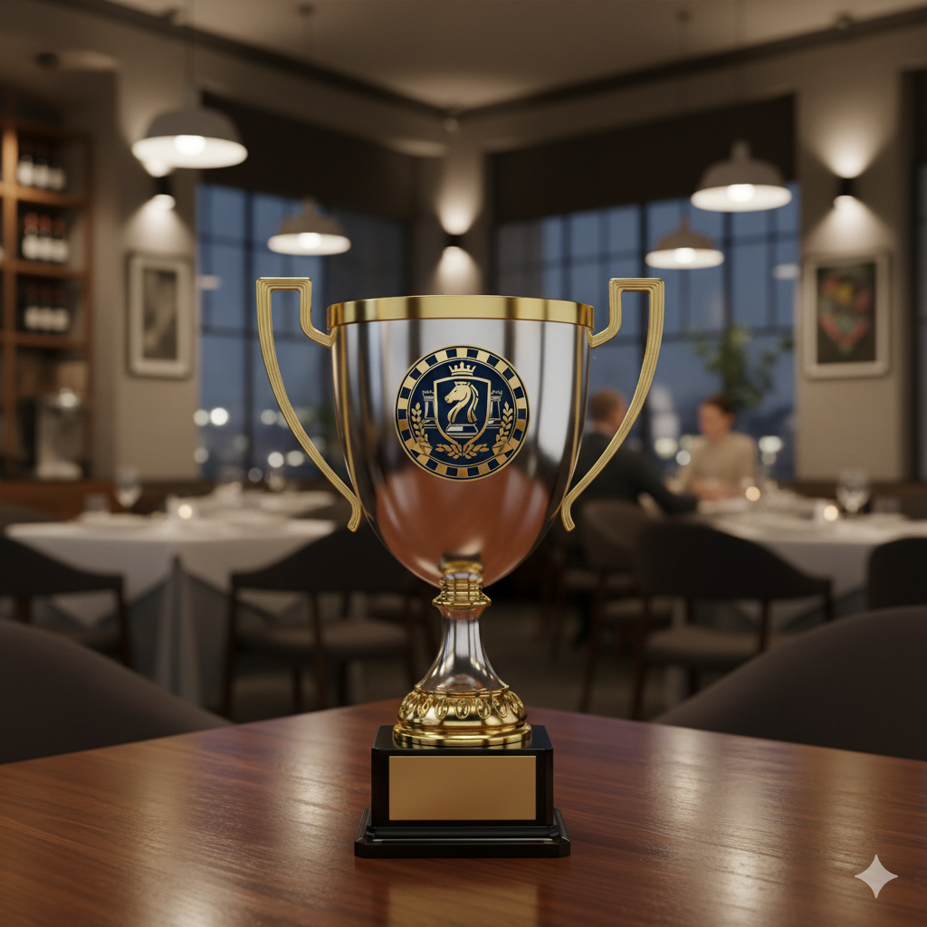 We zijn dus gestart met de prijs voor de kampioen van ons Rapid tornooi, dat was voor Wim. Dan was het de beurt aan de Bekerkampioen. Pacôme zelf kon niet aanwezig zijn, maar zijn vader was er wel en dus nam hij de Beker in ontvangst. Als laatste was het de beurt aan Ivan, onze Blitz kampioen. Wim was zo vriendelijk om zijn Beker even uit te lenen zodat we op z’n minst een foto hadden met Ivan en een Beker. Zijn eigen Beker zal volgen, hij zal deze op één van onze vrijdagavonden in ontvangst krijgen, dan maken we wel opnieuw een foto.