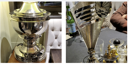Degene die goed oplet zal gezien hebben dat ik niet gesproken heb over de Beker voor het Clubkampioenschap. Dat is normaal, Jelle had namelijk andere plannen het voorbije weekend (in Nederland), dus hebben we zijn Beker even opzijgezet, we zullen het hem wel geven op een vrijdagavond. Terwijl ik de foto’s van de avond aan het bekijken ben twijfel ik wel even welke beker voor hem bestemd was. Ik weet zeker dat de linkse foto die is van de onderkant van een tafellamp, al zou die zeker een goed model zijn voor een grote beker. De rechtse foto is dan weer zeker de Beker van Wim aan de rechterkant. Ik vermoed dus dat de Beker van Jelle die kleine rechts zal zijn!